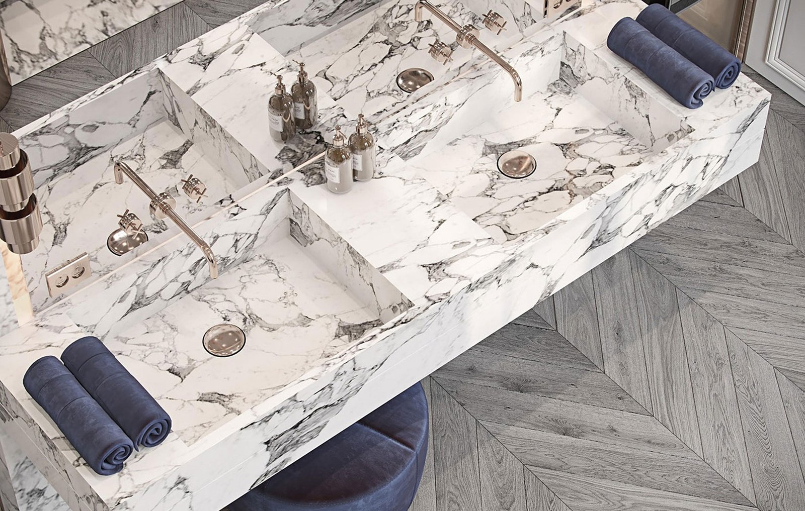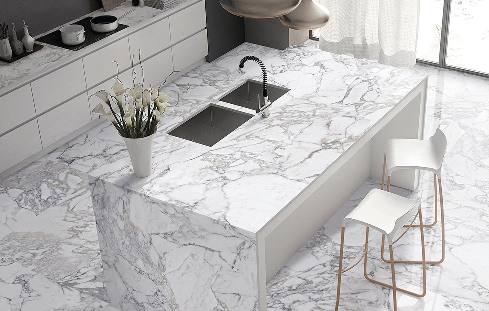A resin treatment fills any natural pores or cracks in the marble, strengthening the slab and providing a flawless finish.